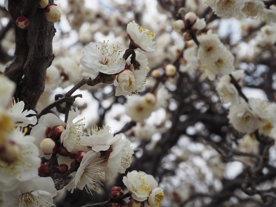 例えば早咲きの寒紅梅・雲龍梅は 1 月下旬から咲き始めますし、