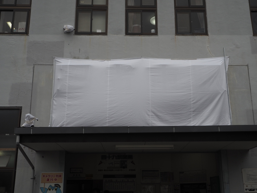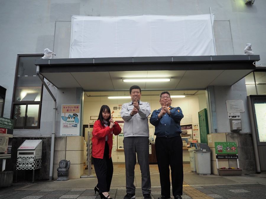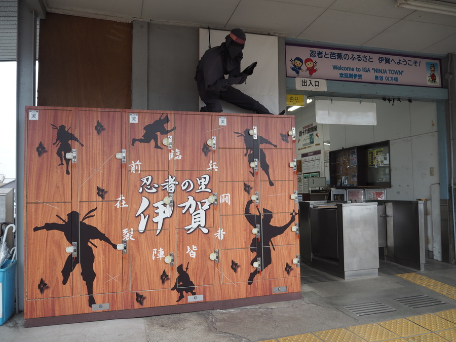 駅舎の正面の文字も「忍者市駅」の字の下に、