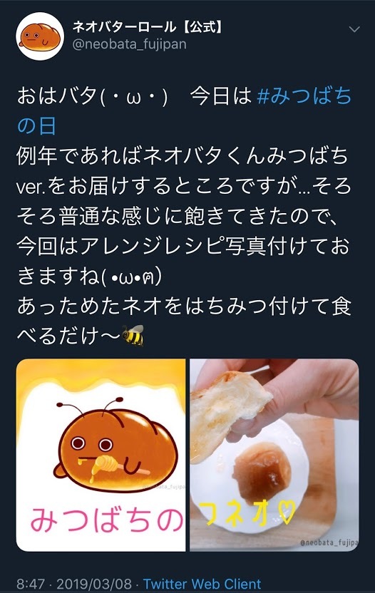 温めると中から「とろ~っと」とマーガリンがでてくるネオバターロールですが、ネオバターロールの公式ツイッターでは、「ゆる~っ」とつぶやいています。