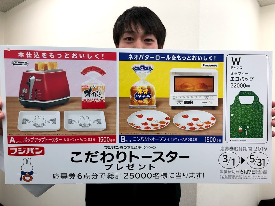 フジパン春のキャンペーンは、5月31日まで実施中です。詳しくは店頭の応募用紙またはホームページをご覧ください。