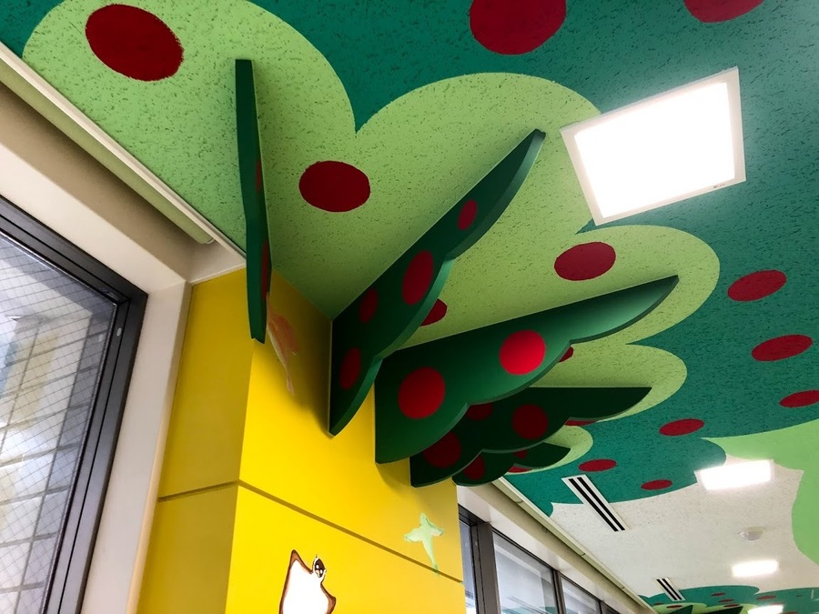 「みどりのほし」など、小テーマを設けて、木や自然、海の中をイメージした空間を作りました。