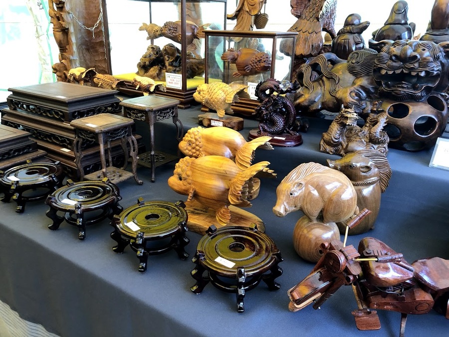 陶磁器以外にも、木彫りや民芸家具なども販売。