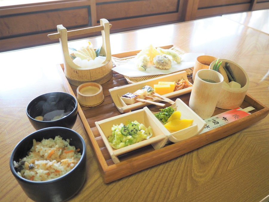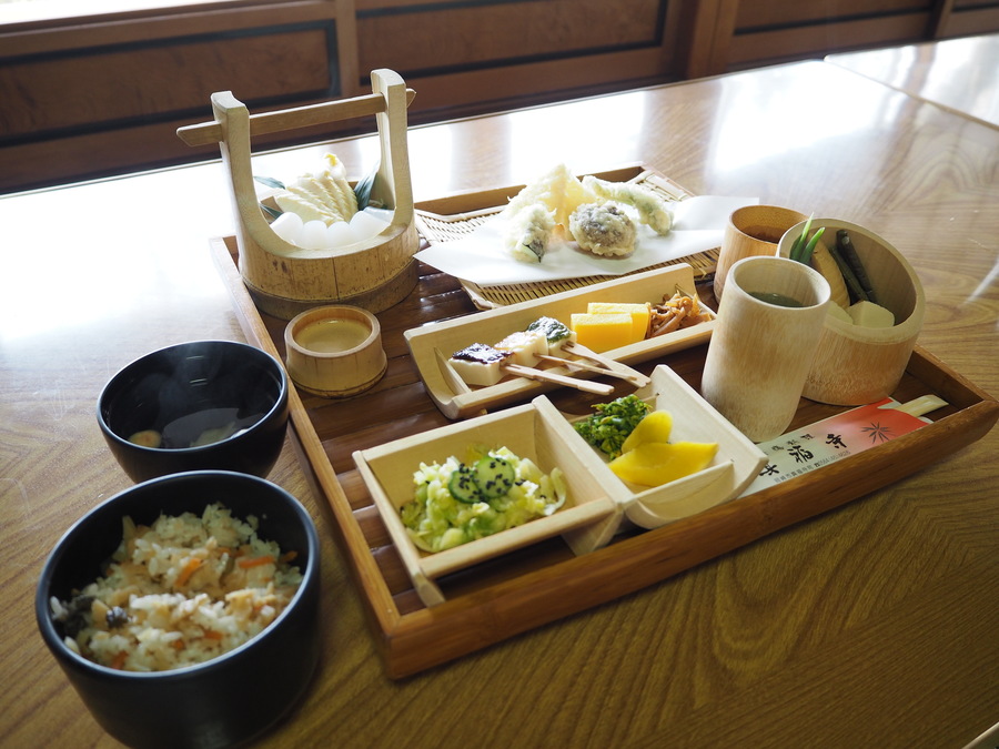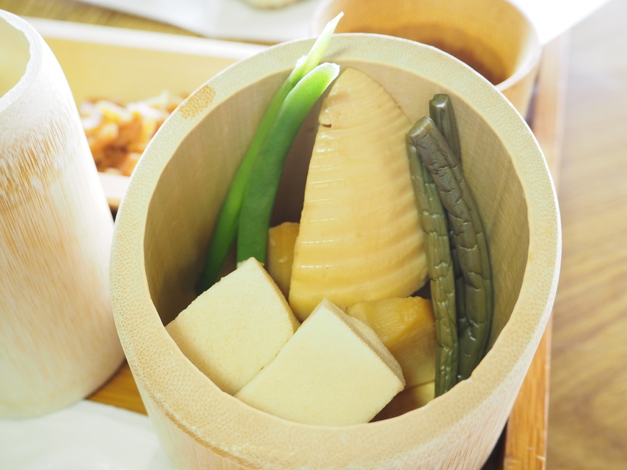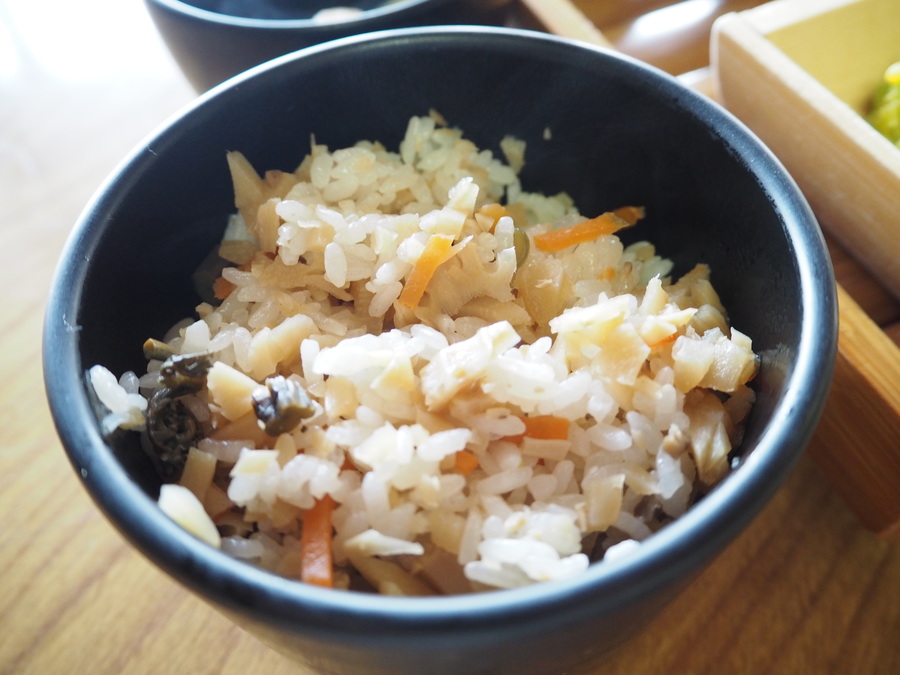 上品な味のお吸い物、具沢山でいい香りの竹の子ご飯…