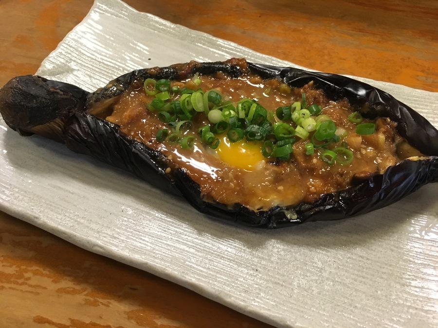 朴葉味噌の味噌を詰めて食べるんだそう🍆✨