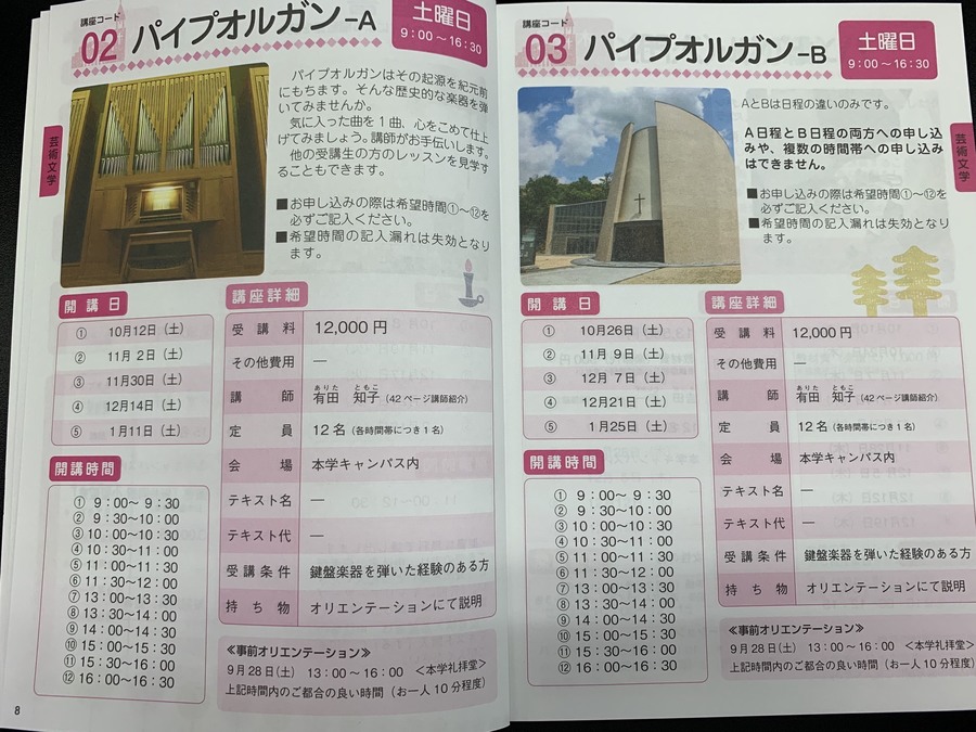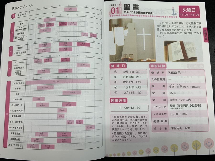 ハープ・聖書といった講座から