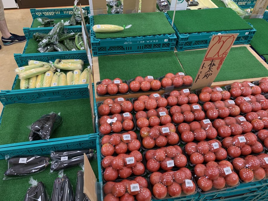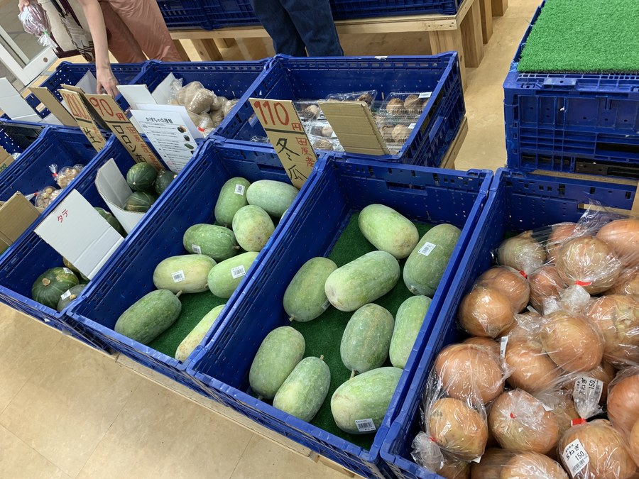 県内各地から新鮮な青果などが毎日仕入れられています。この時期はオクラ、ピーマン、スイカ、イチジク、メロンが旬なんだとか。