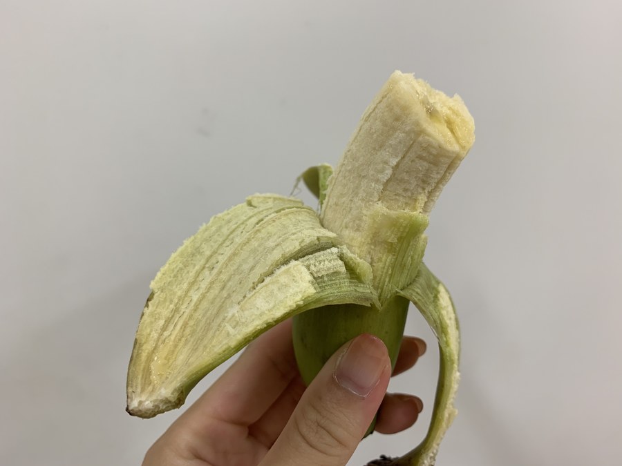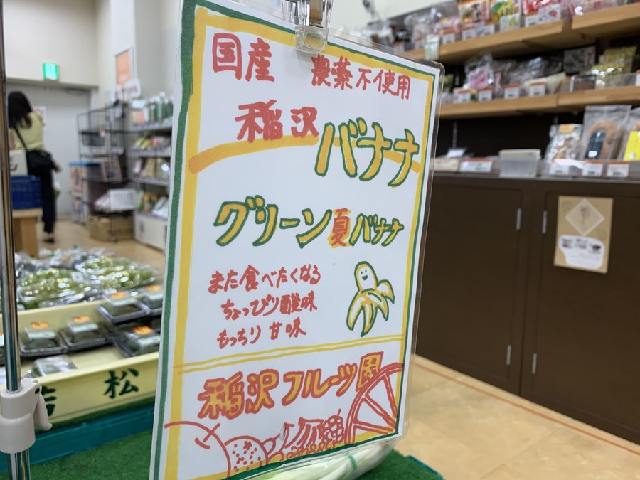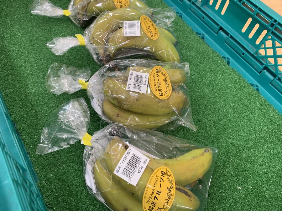こちらの青バナナは、黄色くなる前のものを一足先に入荷しているので、そのまま置いておけば黄色いバナナになるそうです。