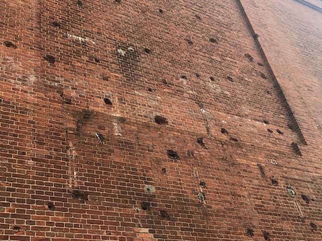 赤レンガで作られた迫力満点の建物はところどころ色褪せていたり、戦争中の銃弾の痕が残っています。