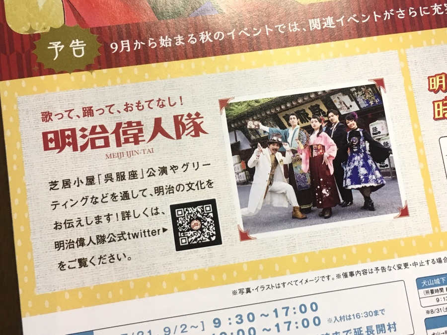 スケジュールなど詳しくは、明治偉人隊公式SNSや、