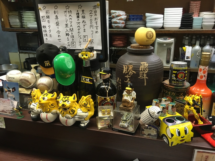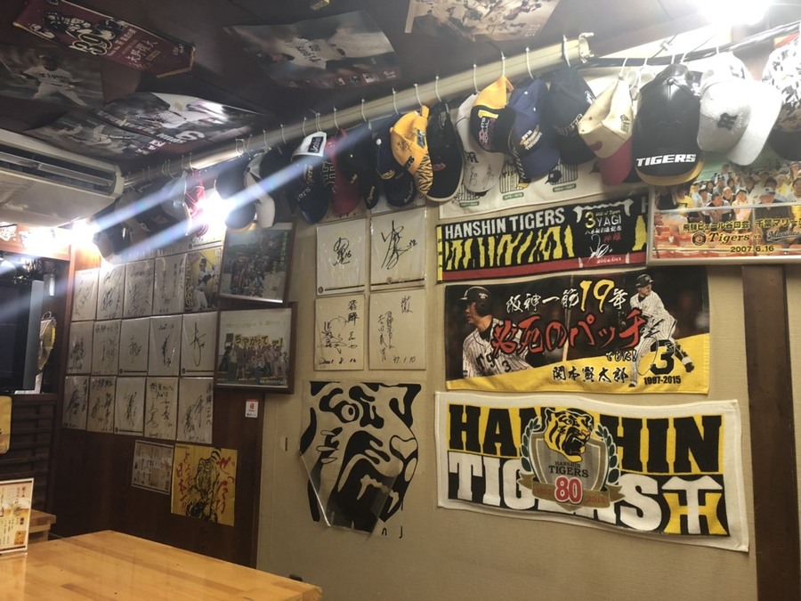 お店の“虎”の文字からもわかるように、阪神ファンの集まるお店です。