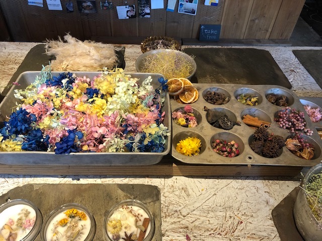 深い赤や緑、オレンジなどの沢山のドライフラワー♡