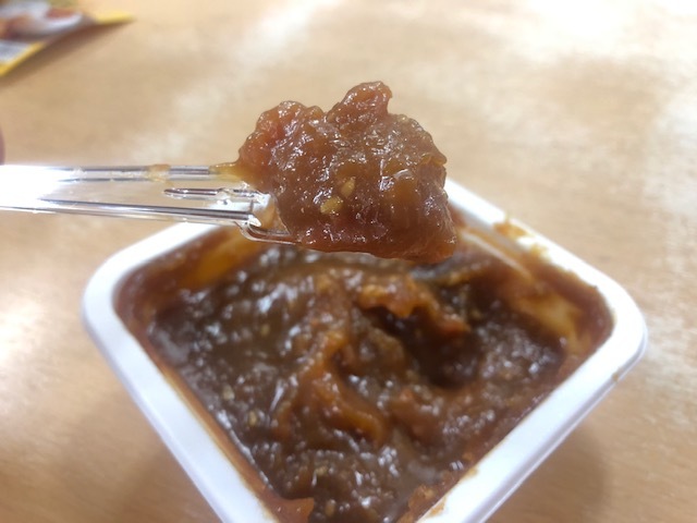 これは、味噌と砂糖をベースに、豚肉を混ぜた甘い味噌!