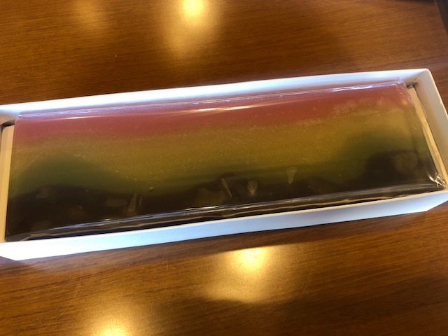 こちら、赤・黄・緑・小豆色の4層になっていて