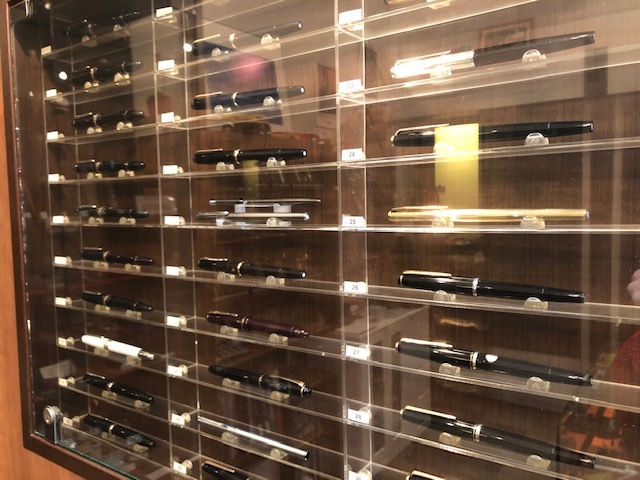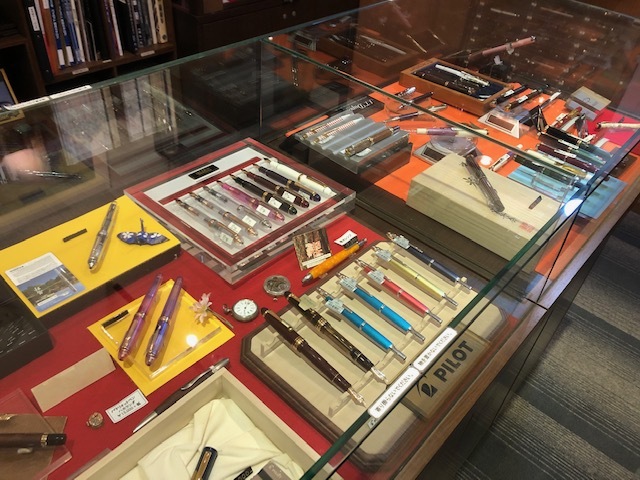 たくさんの万年筆が並んでいますが、