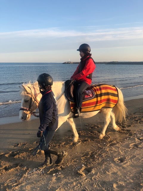ポコちゃんは、海岸沿いでの乗馬に合った