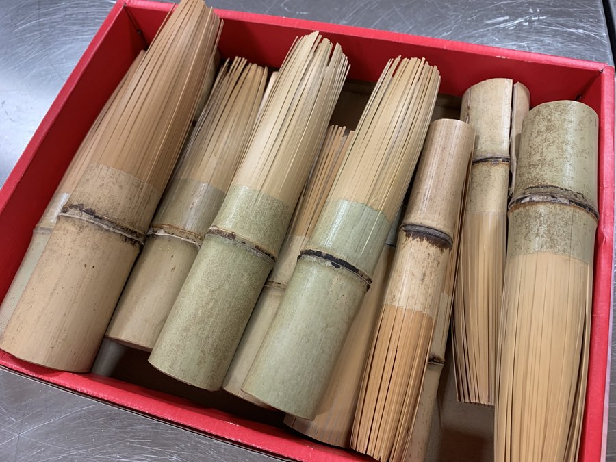 煮だした番茶を木の桶にいれ