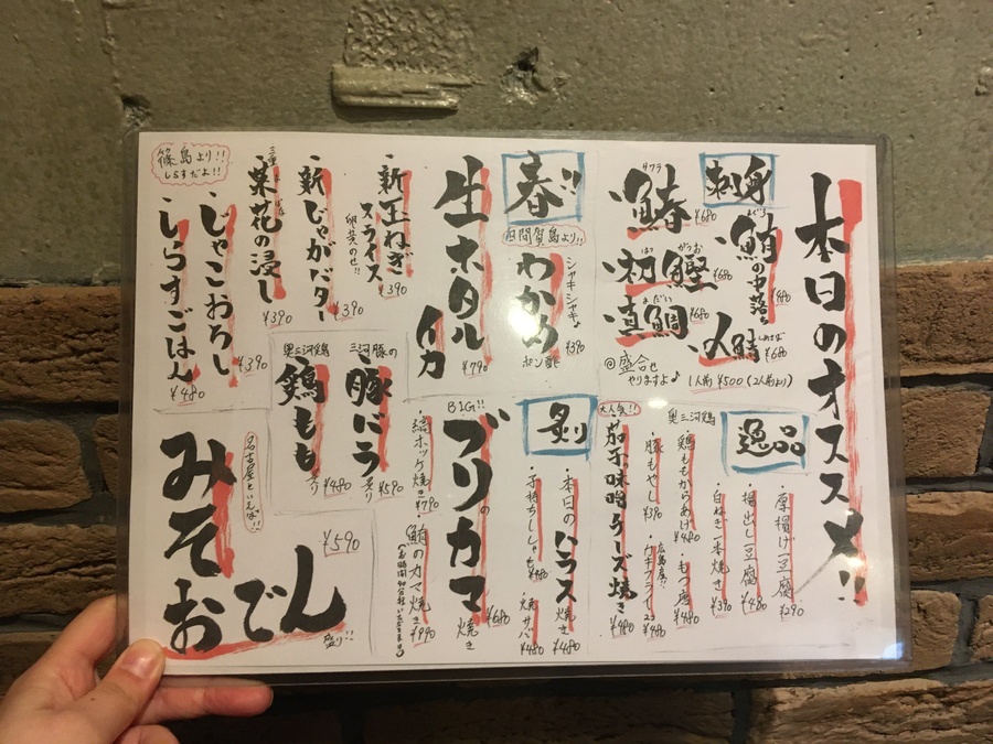 お刺身やおばんざい、本日のオススメなどの料理があり
