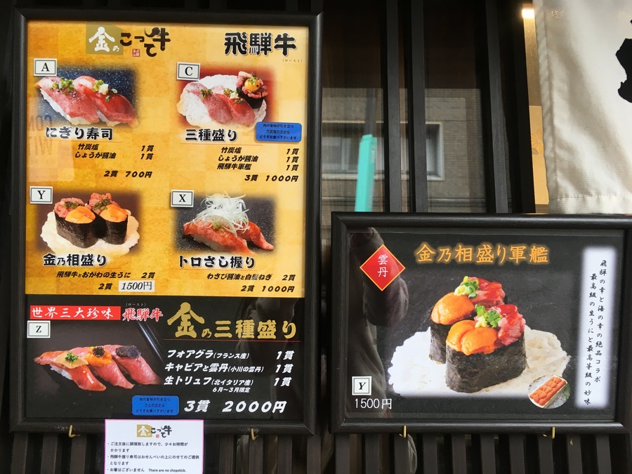 「金乃相盛り軍艦」では飛騨牛とウニを軍艦で味わえます~💗