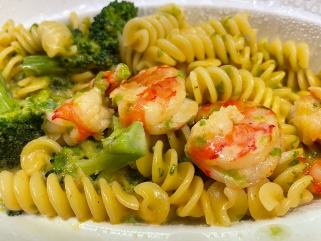 「海老と岩のり、ブロッコリーのトマトクリームソースパスタ」