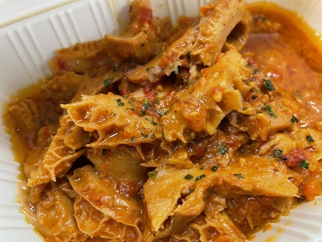 ブロッコリーが濃厚なトマトソースと絡まり、