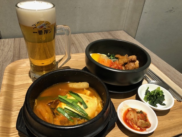 私は、スンドゥブチゲとダッカルビ石焼ビビンバを
