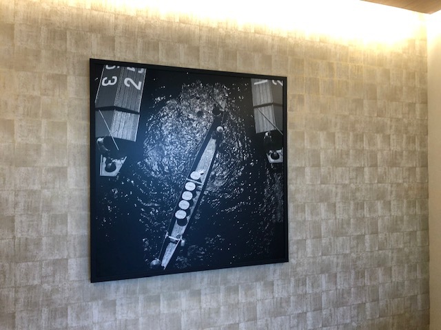 犬山城や鵜飼いの様子を切り取った写真が飾られていて、