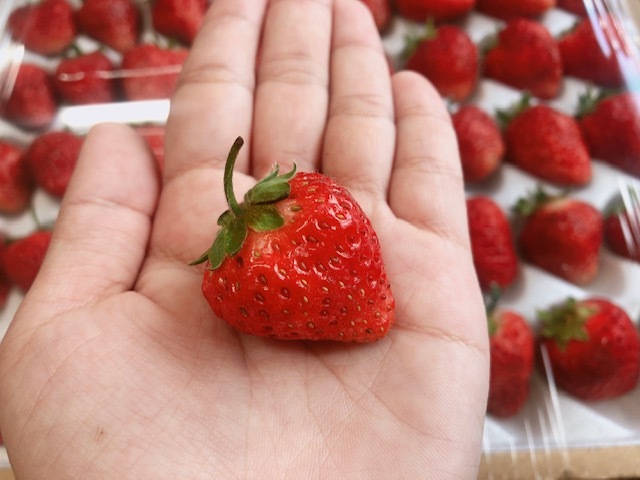 こうして収穫を迎えた夏いちご、
