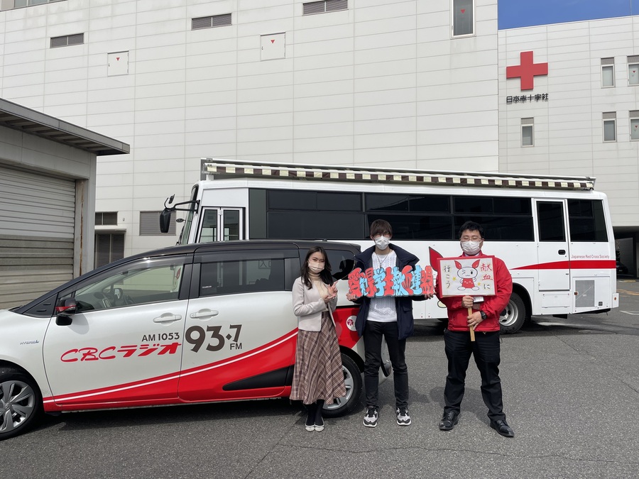 ご通行の皆様に献血のご協力を呼び掛けますよ!
