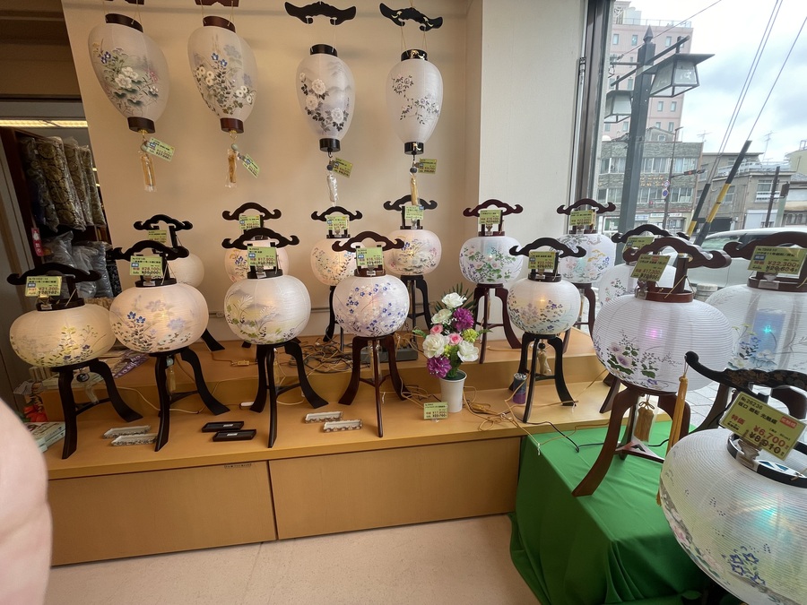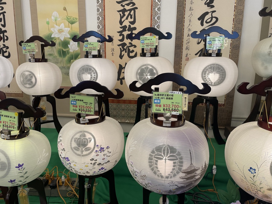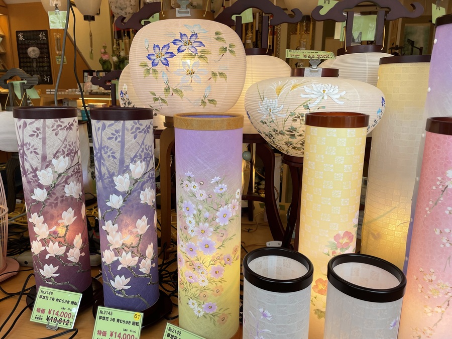 家紋入り提灯や涼しげなお花の絵柄の入った提灯まで