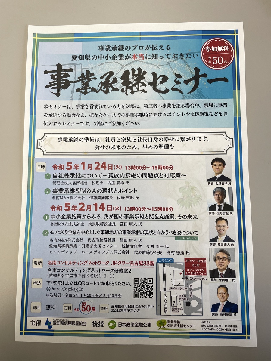 「事業承継セミナー」を受けられるチャンスです✨