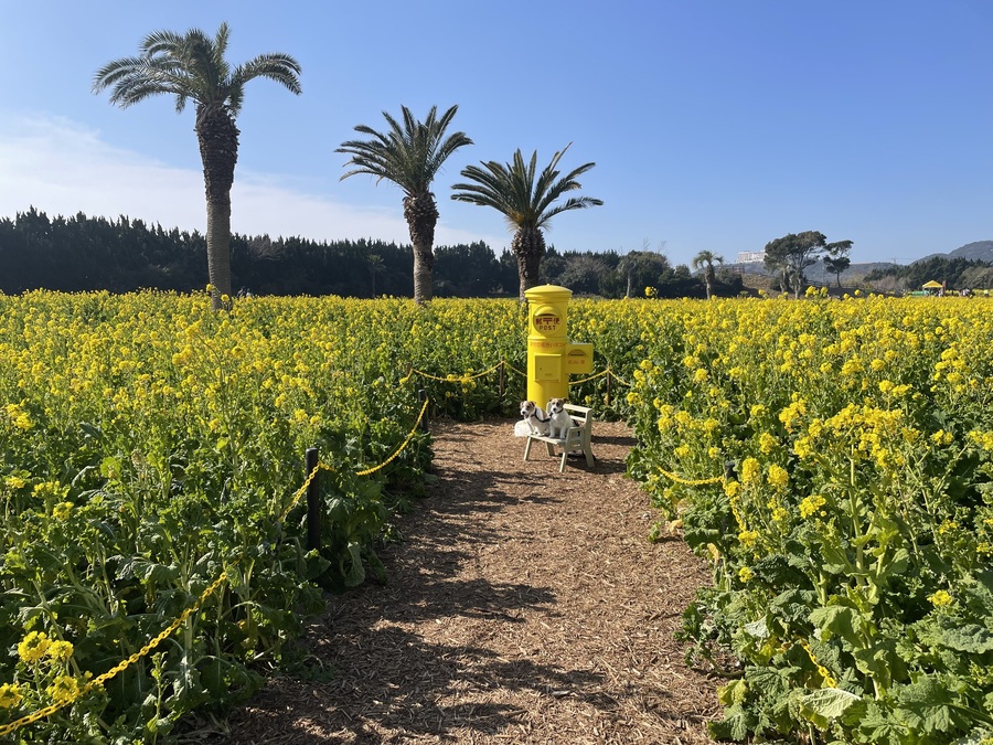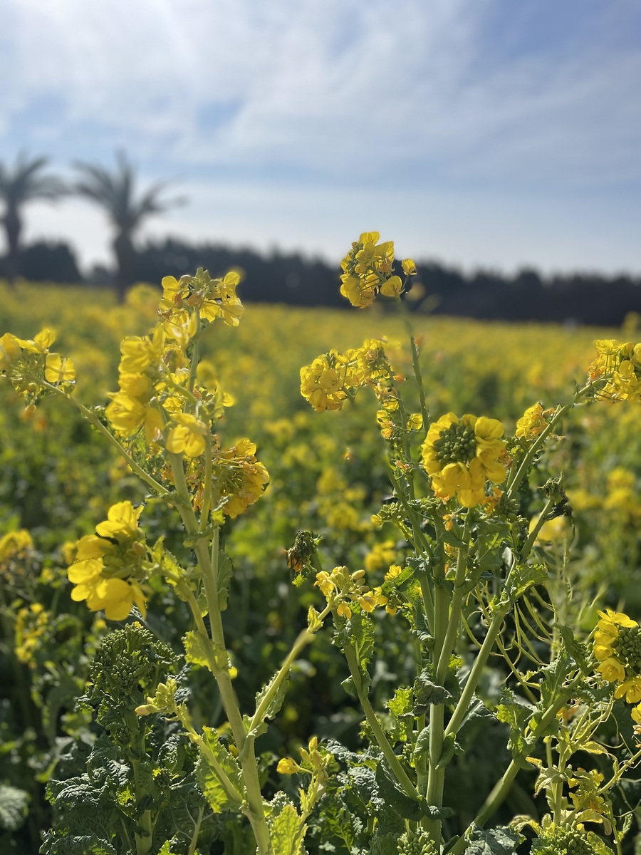 一面の菜の花の上を、まさしくランウェイのよう✨