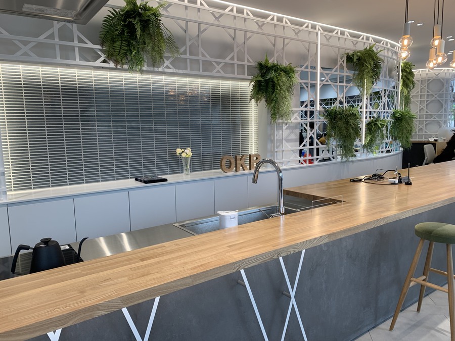 すごく大きいモニターやキッチンカウンターなどがあり、