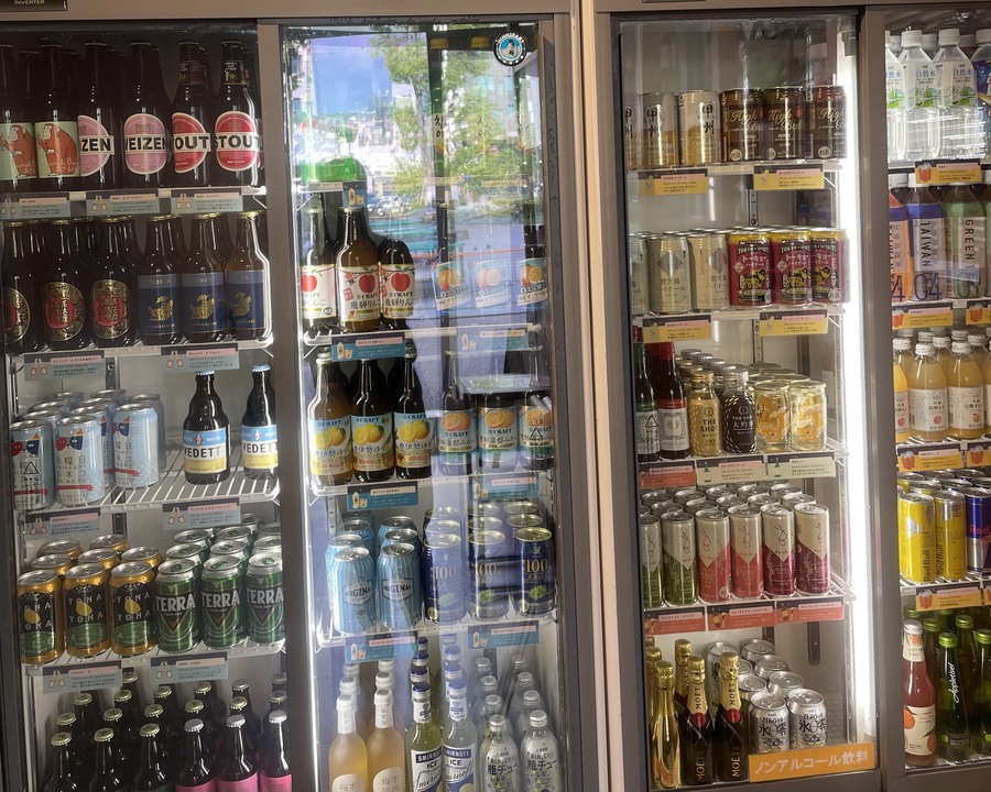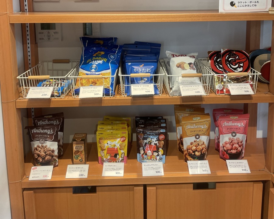 卓球台すぐ横の大きな冷蔵ショーケースには
