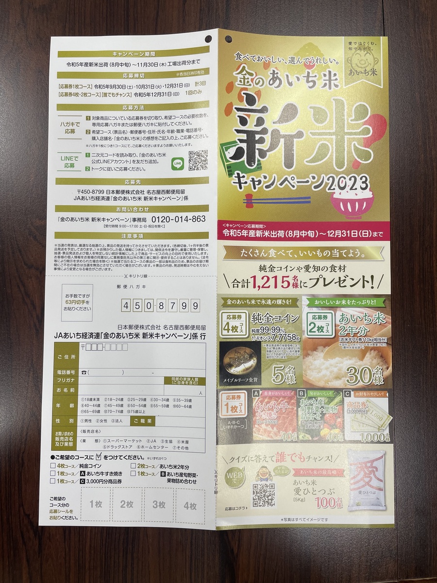 「あいちのかおり」などをお買い求めの方に抽選で、