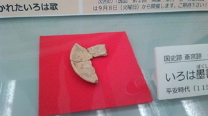 日本最古のいろは歌がかかれた土器が展示されています