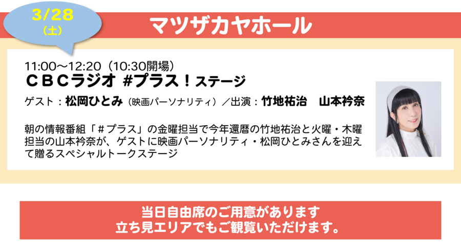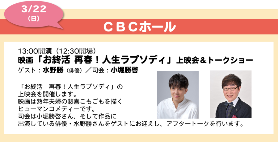 3/22(日)には、CBCホールで、