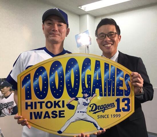 岩瀬投手が9回裏2アウト、最後のバッターを打ち取って勝利。自身の1000試合登板を達成しました。