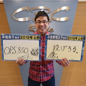 平田良介選手と小笠原慎之介投手の公約ボードを