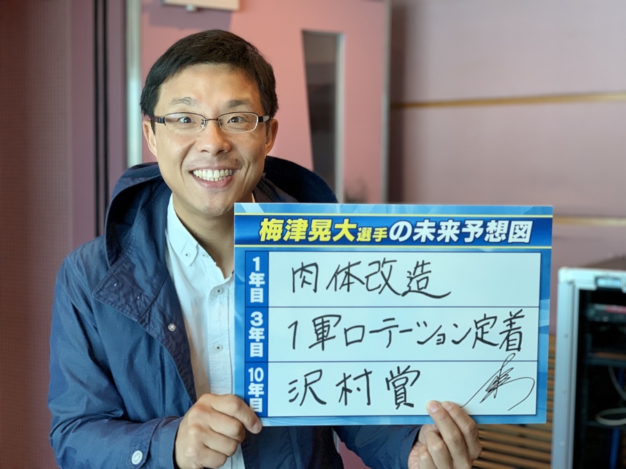 「梅津晃大投手の公約ボード」希望とお書きの上