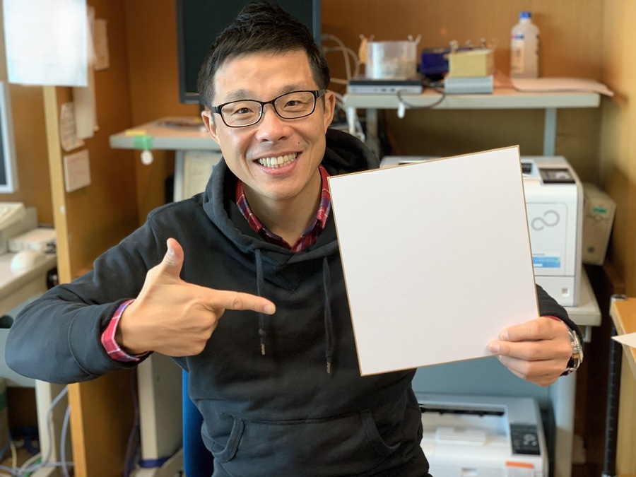 若狭アナが持っている真っ白なサイン色紙とTシャツに