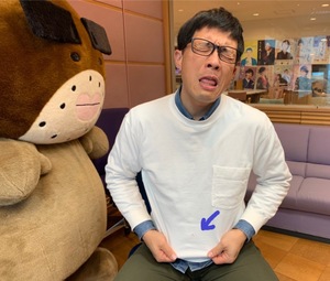 白Tシャツに赤ペンがついてショックを隠せない若狭アナ