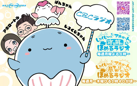 CBCラジオ『しろくじちゃんとアホロートルが寝る前にほめるラジオ』は、シロナガスクジラのゆるキャラ・しろくじちゃんと、お笑いコンビ・アホロートルの林廉と安田遥香が、リスナーを褒めて癒すヒーリング番組です。
