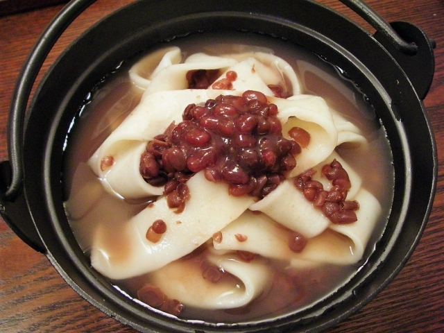 また、「あずきほうとう」という、おしるこの中にほうとうの麺を入れた食べ物もあるそうで、これはお祭りや婚礼などハレの日に食べるものだそうです。