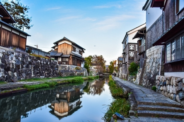 滋賀県の定番ロケ地といえば、なんといっても近江八幡市にある「八幡堀」です。商人の町として江戸時代の面影が色濃く残る風情あるお堀で、『るろうに剣心』や『鬼平犯科帳』をはじめ、数えきれないほどの時代劇作品が撮影されてきたそうです。