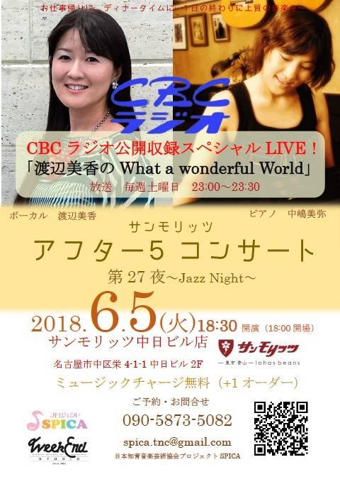 6月5日(火)栄の中日ビル2階 サンモリッツで、番組公開ライブを行います!
