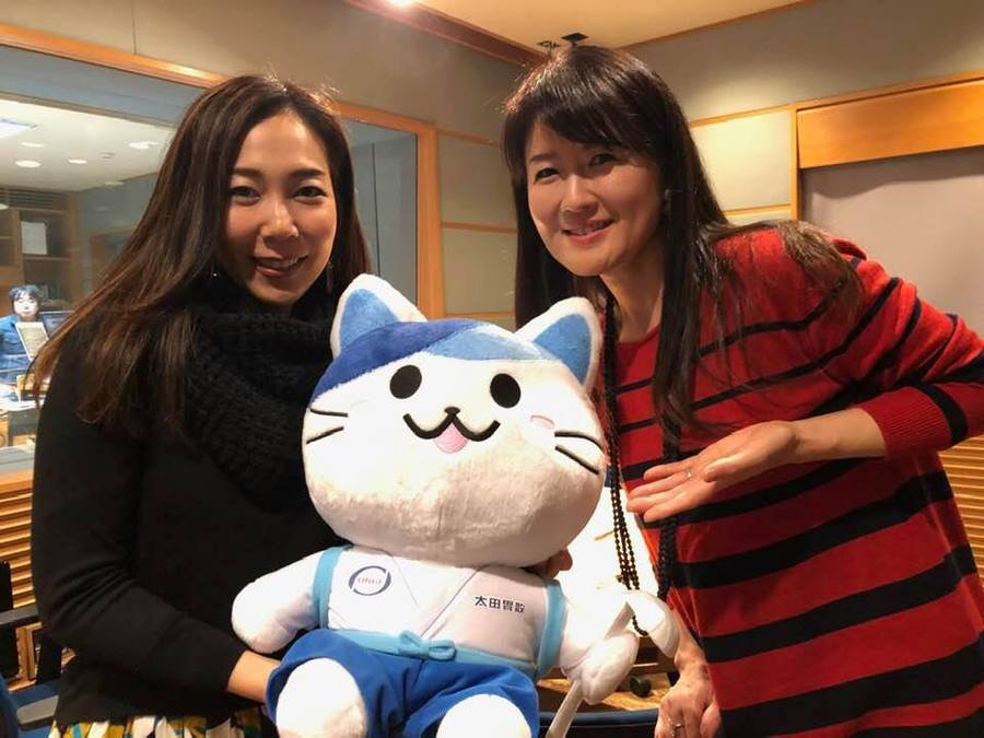 「小学生のころ、ハーモニーの楽譜を書いて、クラスメイトを集めて縦笛で演奏してもらっていました。」とほがらかに語る露崎春女さん。太田胃にゃんも、美人さんに抱かれてうれしそう。。。