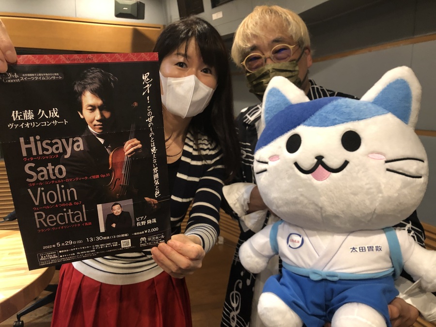 ラジオ番組に、朗読に、と、幅広い活動をされてきたタレントでもある森ミドリさんおすすめのバイオリニスト、佐藤久成(ひさなり)さんのライブをご紹介くださいました。