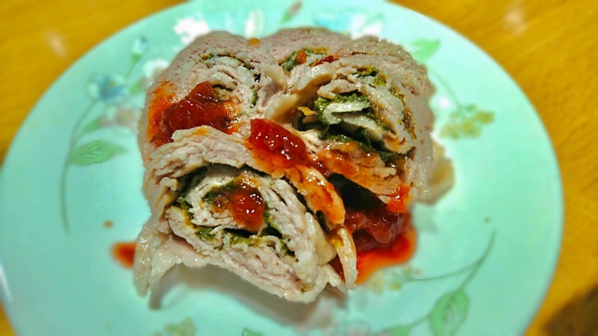梅肉ソースの代わりに、焼肉のタレを使うと、がっつりロール豚肉に大変身。