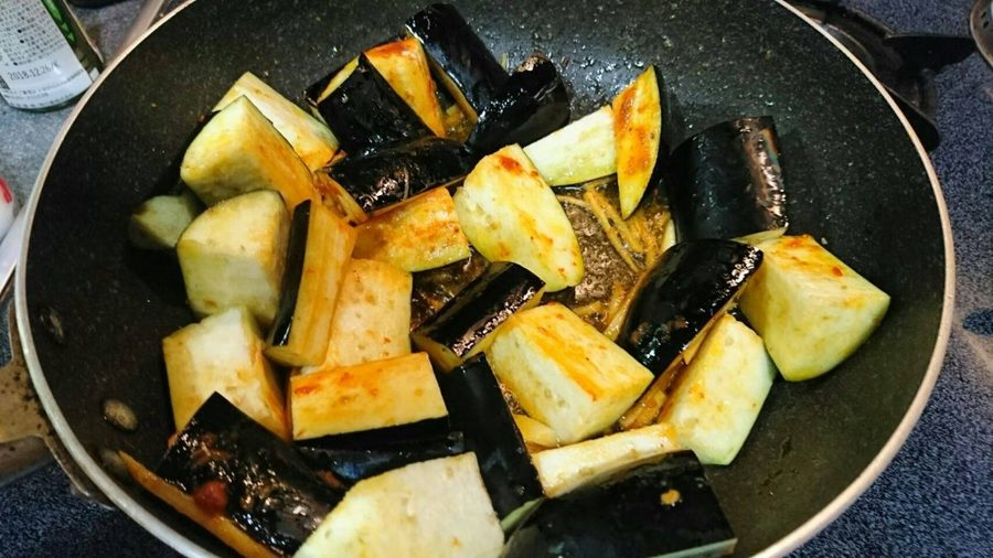 ナスって油が大好きですよね。少し入れても、すぐになくなった感じになるくらい、ナスは油をよく吸います。