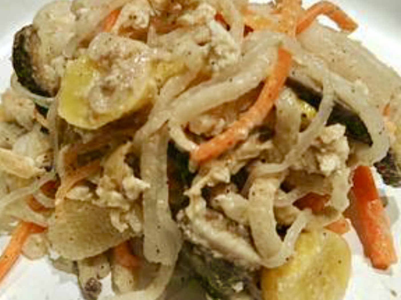 お酢は大さじ2杯で、そこに大根だなんだと、食材を全部入れて、混ぜたのが「七福なます」です。